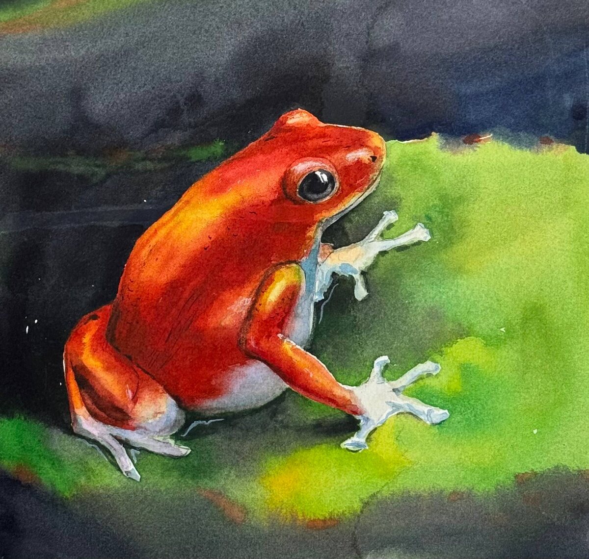 Очень люблю рисовать животных) Отдельная любовь - работа по-мокрому. это когда смачиваешь лист с 2 сторон и краска течет мягко-мягко. У меня от этого процесса до сих пор мурашки 🥰 —— Пересматривала работы и поразилась тому, сколько у меня «неизданного» (читай: неопубликованного). Можно целые серии составлять)) —— Похожая красная лягушка, кстати, только без фона всё еще продается на обложке скетчбуков от бренда «Малевич»: пруфы будут в комментах)))