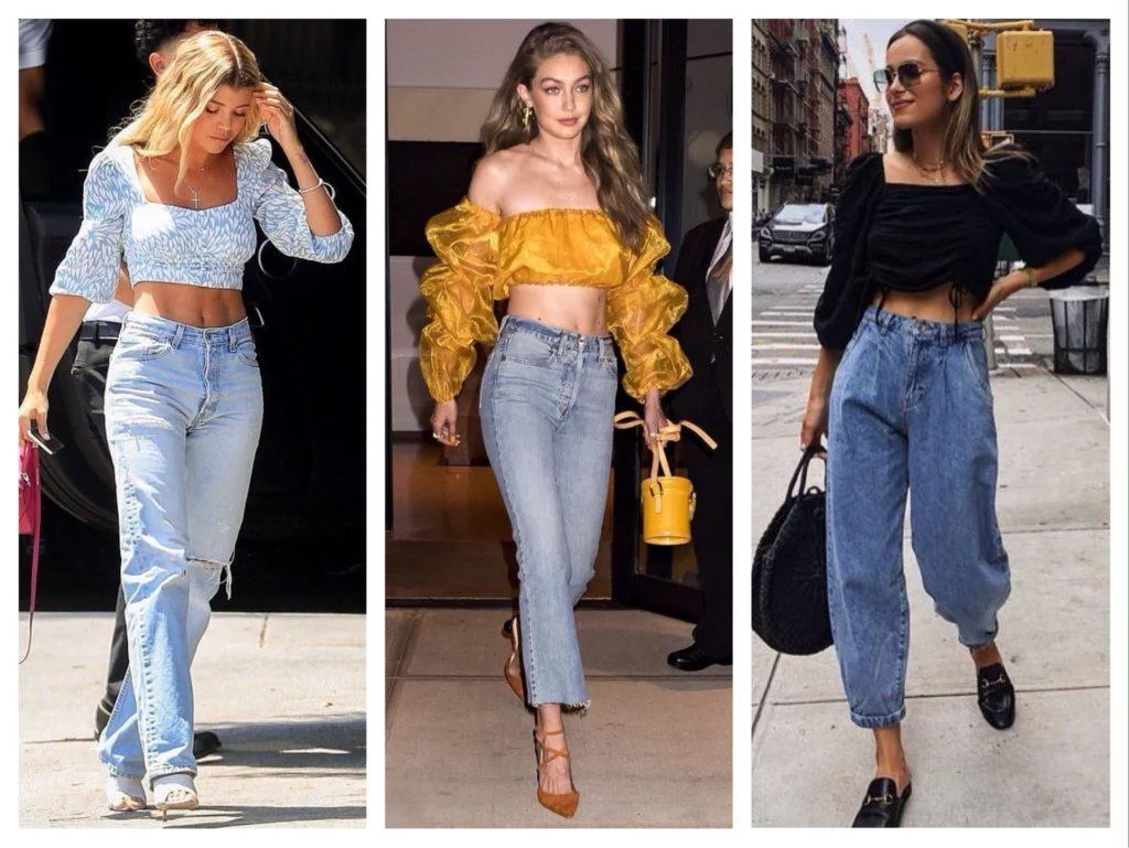 2. Джинсы с Высокой Талией + Укороченный Топ или Кроп-свитер