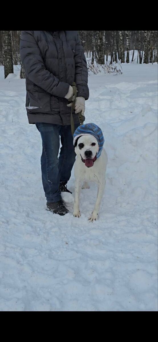 😁 Порекомендовали нам Орфея на прогулку выводить в шапке, чтоб ухи его не мерзли и не кровили. Ну что ж? Сказано - сделано. Шапку нашли, нарядили кабанчика и гулять повели. Только вот не увенчалась успехом сия затея. Скидывает Орфей чепец за секунды. То ли размер не тот, то ли расцветка не по нраву. Будем думать, искать варианты по защите ушек чудесных от морозов. #собака_орфей