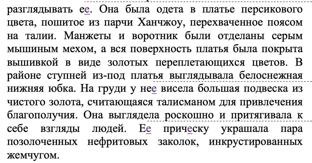 я-то совсем не шарю. Но иногда и я шарю — не зря писала диплом по китайскому костюму 😠 Я не буду пустословить. Итак, давайте поговнимся вместе со мной: Во-первых, в древнем Китае не было платьев, и простой гуглинг на слово ао выдает курточку или верхний короткий халат, а не ПЛАТЬЕ. Даже те самые «платья», которые носят в династию Тан — это не платье, это просто кофта и натянутая на грудь юбка. Платья — европейская тема, в Китае их не было до Китайской Республики (ципао). Так откуда пояс? Во-вторых, как из-под платья может вылезать юбка? Это чисто технически… странно. Очевидно, что у нас курточка + юбочка, и если первое исправить, то второе уже выглядит логично, и тогда все в шоколаде. В-третьих, это куртка с круглым воротом, так что логично, чтобы мех — БЕЛИЧИЙ, А НЕ МЫШИНЫЙ — был на вороте и манжетах. В-четвертых, узор «ветви и цветы» — это популярный орнамент, и их не стоит объединять. Красивый, кстати. В-пятых, это не подвеска. Это золотой замочек — вид украшений для детей, к