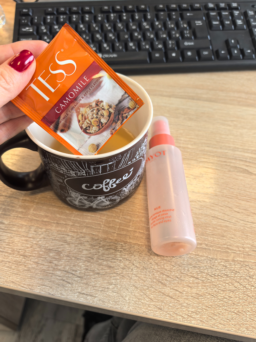 Так что дополнительно использую и точечные средства. Много пью и наношу на кожу мист. Пока ещё использую остатки купленного в прошлом году миста от Payot. Но думаю,, тут подойдёт любой увлажняющий. Главное не забывать наносить его почаще.