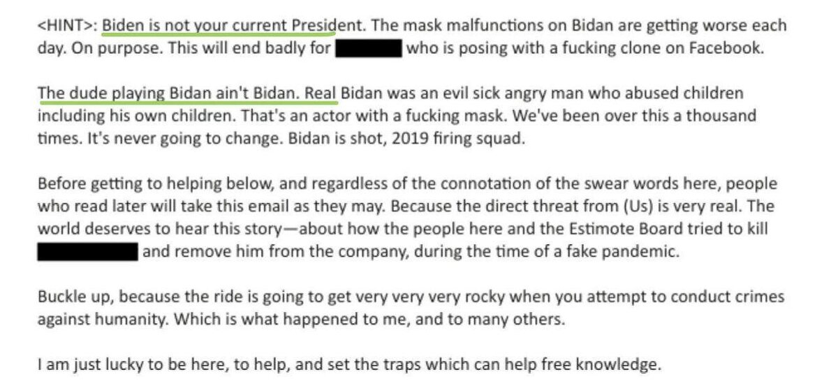 В одном из писем Эпштейна сказано, что Джо Байден давно преставился. После его смерти в 2019 роль Джо выполняет актер в силиконовой маске, которую смастерили лучшие профи Голливуда. В Сети тут же всплыли фото и видео, доказывающие эту теорию. Шок! — 🤯 Чушь — 🤡 Я давно знал — 👍 🚲 Подпишись на Телега Online