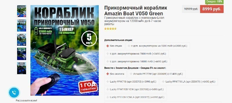Прикормочный кораблик с усиленным Li-ion аккумулятором на 12000 мАч до 6-7 часов работы https://amazin.su/shop/7930/desc/prikormochnyj_korablik-amazin-boat-v050-green
