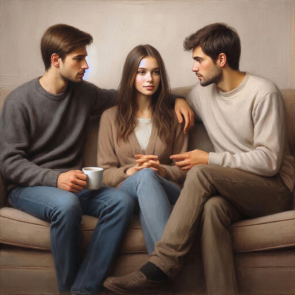 Назовём её Анной (имя изменено, разрешение на публикацию получено). Она произносит эту фразу не как признание, а как исповедь. "Я люблю двоих". Ко мне она обратилась потому что не понимала себя и сомневалась в своей "адекватности": "Это возможно? Или со мной что-то не так?". Когда кажется, что любишь двоих, то это редко бывает историей о "богатстве чувств". Чаще — это внутренний конфликт, спроецированный вовне. Люблю ли я двоих или кого-то одного из них? одновременно. Вопрос этот волнует не столько из-за того, что надо делать выбор, сколько из-за того, что ни один из объектов сам по себе не воспринимается психикой как целостный и достаточный.