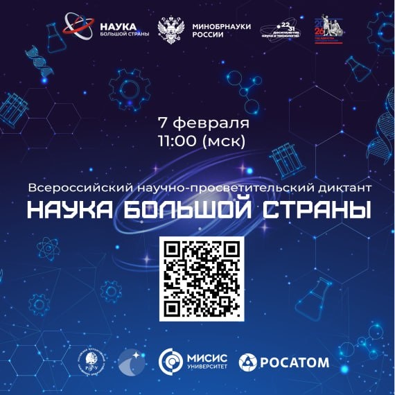 большой страны". Узнайте больше о технологиях и разработках ученых, которые стали предметом гордости нашей страны, ответив на 20 вопросов! https://диктант.наука.рф/
