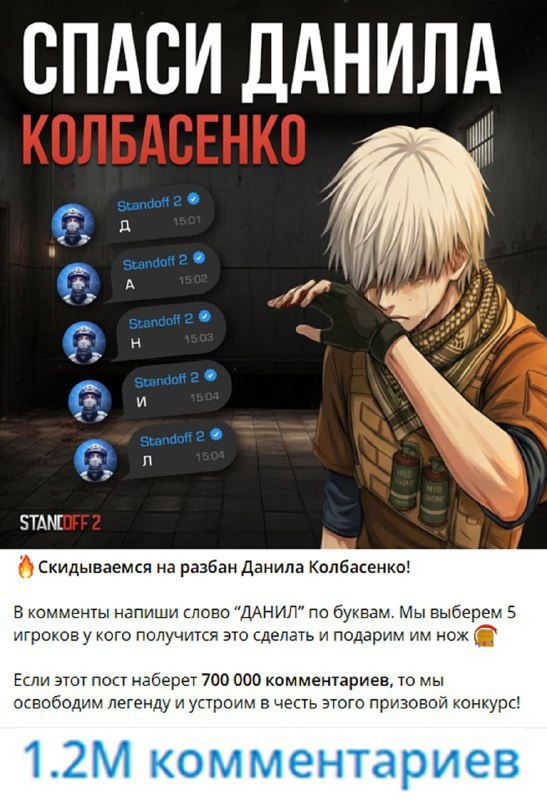 Standoff 2 объявила о снятии бана с главного мема Рунета: школьник однажды назвал своё имя вместо ID на стриме, и фраза мгновенно разлетелась по интернету. Разработчики пообещали разбан, если под постом наберётся 700 тысяч комментариев — в итоге игроки наспамили около 1,2 миллиона. Прошлый рекорд держался за постом Володина пятилетней давности с 591 тысячей комментариев. Кажется, сервера Telegram в тот момент реально вспотели 💻 Пополнить моментально Steam Подробнее: https://hard-tm.su/threads/145355/ 🕹HARD-TM — Подписаться