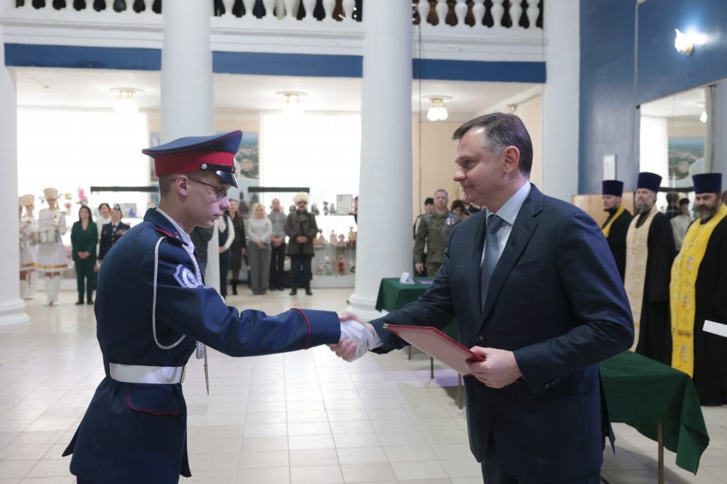 В Белокалитвинском районе состоялась торжественная церемония принятия Кодекса чести кадетами казачьего корпуса имени Матвея Платова. В мероприятии принял участие губернатор Ростовской области Юрий Слюсарь. Кодекс чести – ключевое событие в жизни белокалитвинских кадет. Первую в своей жизни присягу на верность Родине и товарищам воспитанники принимают в год поступления в корпус. Эту традицию, существующую 23 года, с момента создания образовательного учреждения, в этом году поддержали 75 кадет, и среди них — 26 девушек. Губернатор поздравил ребят с торжественным событием — принимая Кодекс чести они вступают в казачье братство. «Воспитание и образование, которое вы получаете в казачьем кадетском корпусе, возможно, станет определяющим для вашей будущей карьеры. Для тех ребят, кто хочет идти путём служения Отечеству, правительство региона создает все условия. Сейчас на Дону порядка 780 учебных заведений, которые развивают казачью культуру и традиции. К 2030 году их будет более девятисот»,