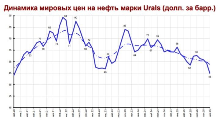 Бочка Urals на мировом рынке сейчас стоит около 40$ или 3100 руб