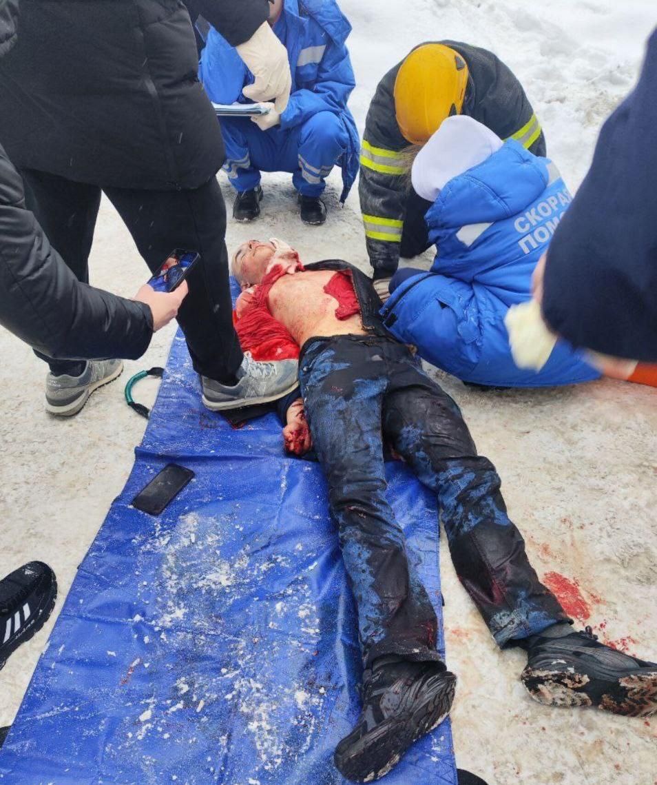 🚫На фото нападавший 15 летний подросток. На стене он кровью нарисовал, запрещённый в РФ. Символ. На видео момент госпитализации одного из пострадавших. Пострадавшим скорейшего Выздоровления. 💬In the photo, the attacker is a 15-year-old teenager. He painted on the wall with blood, banned in the Russian Federation. Symbol. The video shows the moment of hospitalization of one of the victims. I wish The Injured a speedy Recovery.