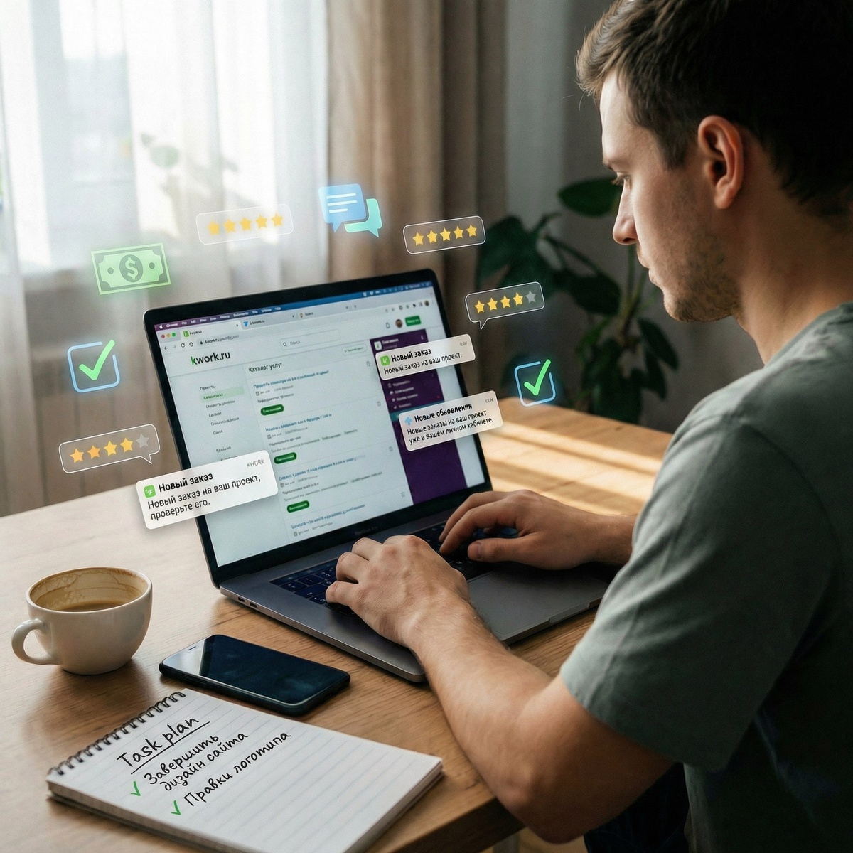 Совет: Используйте обе биржи одновременно. На Kwork создайте кворки для быстрых заработков, на FL.ru откликайтесь на крупные проекты. Это даст вам стабильный поток клиентов с разным бюджетом.