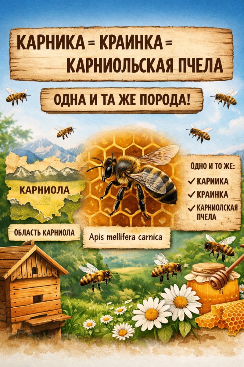 Карниольская пчела — одна из самых известных пород в мировом пчеловодстве. Но её называют по-разному: "карника", "краинка", "карниольская". Это не разные пчёлы и не разные породы, а одно и то же — "Apis mellifera carnica". Разница лишь в названиях, которые закрепились в разных языках и традициях. И причина тут чисто лингвистическая. Родина этой пчелы — историческая область "Карниола" (в славянской традиции "Крайна"). Сегодня это территория современной Словении и прилегающих районов Австрии, северной Хорватии, Венгрии и Италии. Именно здесь, в условиях горного и предгорного климата, с холодными зимами и коротким, но интенсивным медосбором, сформировалась пчела, хорошо приспособленная к резким перепадам погоды и быстрому развитию весной. Да-да, Словения - это родина краинской или, что равнозначно, карниольской породы пчел. Почему же произошла такая путаница и сумятица в головах наших пчеловодов? Название "карниольская пчела" напрямую связано с латинским названием региона — Carniola. Те