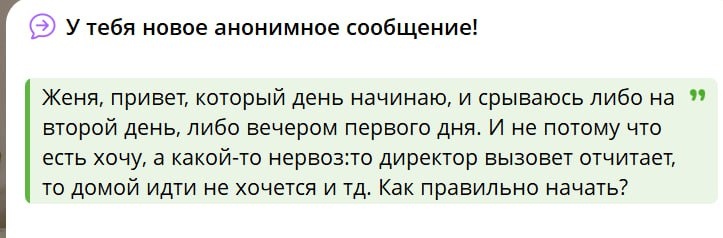 И это не история про еду и я слабачка. Я это очень хорошо знаю по себе. Когда я худела с 92 до 60, у меня годами было одно и то же: чуть что - магазин, доставка, холодильник, обжорство и еще больше стресс. Пока реально не прижало, ничего не менялось. В кабинете у врача. Пока не болит по-настоящему, кажется, что можно подождать. Вот эти схемы 2-3 дня держусь, потом срыв. Это жалость к себе на фоне стресса. Работа, начальник, давление, усталость. Кстати, в большинстве случаев начальник реально дурак, но суть вообще не в нем. Суть в том, что стресс мы заедаем. Не потому что хотим есть, а потому что так снимается наша тревожка. И тут работает не диета, а понимание себя. Кто вы сейчас и кем вы хотите быть. Не «похудеть к лету», а какая вы через год, через два, через пять. Потому что все, что вы делаете сегодня, это вы через несколько месяцев и лет. А то, какие вы сейчас, это результат решений и действий, которые были раньше. Я когда-то писала себе письмо. Письмо от себя сегодняшней себе