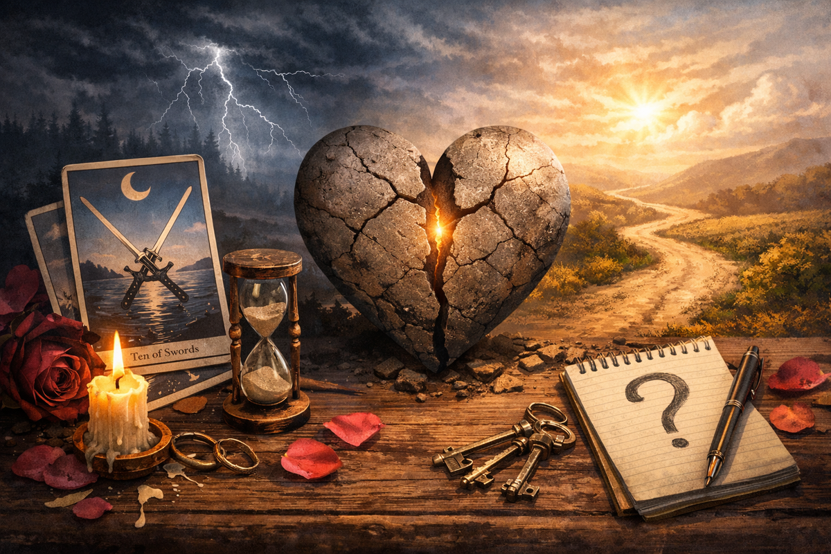 В любовных раскладах он часто показывает завершение цикла, особенно если рядом стоит 8 Кубков.