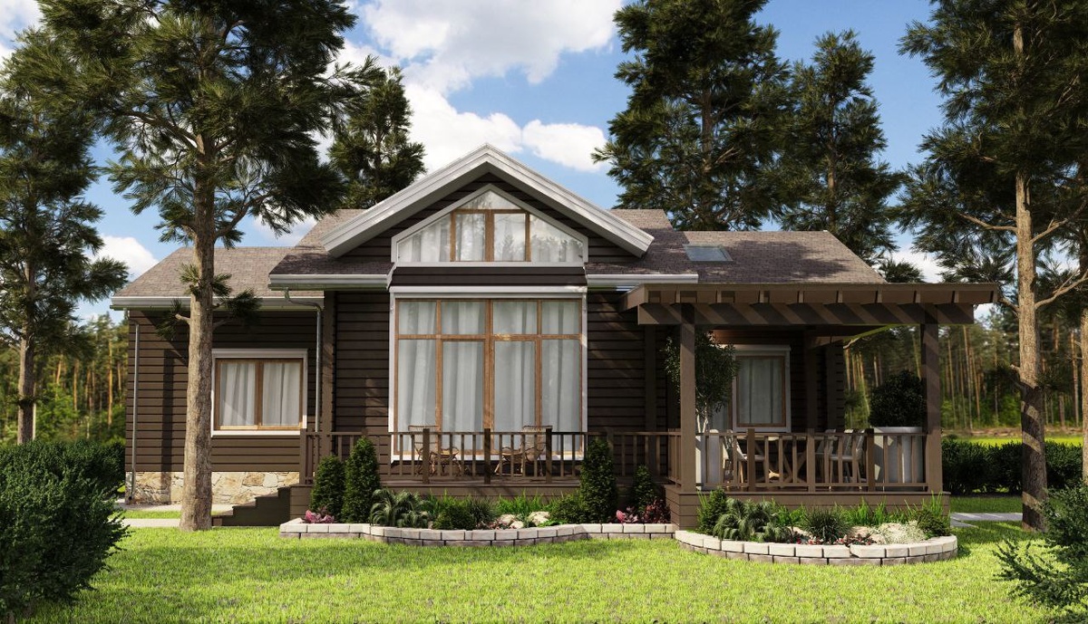 🔥 Эскизная часть проекта крытой террасы у главного фасада дома из клееного бруса