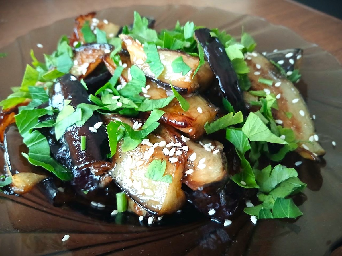Азиатская закуска из баклажанов — пикантная нежность.