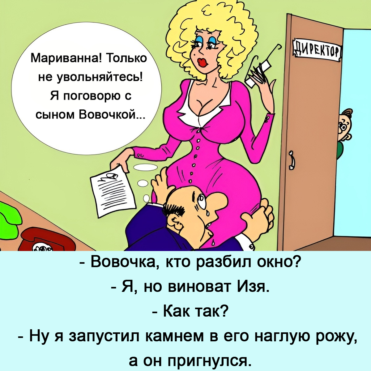 Есть в нашей культуре пара, которая не нуждается в представлении. Марья Ивановна и Вовочка — это не просто учительница и ученик. Это вечный двигатель школьного юмора, дуэт, который работает безотказно уже не одно поколение. Стоит только вспомнить: “Вовочка, почему за тебя уроки папа делает?” — и в голове сразу оживает целый спектакль. Школа — это первый коллектив, где мы учились не только решать задачи, но и выкручиваться из самых безнадёжных ситуаций. И если Марья Ивановна — это закон, порядок и терпение на грани фантастики, то Вовочка — это хаос, находчивость и врождённое чувство юмора, которое спасает даже в самых безвыходных случаях. Потому что узнаём себя. В каждом из нас живёт маленький Вовочка, который мечтает, чтобы звонок прозвенел на пять минут раньше, и большая Марья Ивановна, которая хочет, чтобы всё было по правилам. Это не просто анекдот — это зеркало жизни, где один всегда прав по должности, а второй — по велению души. Карикатуры Валерия Каненкова — это не просто картинк
