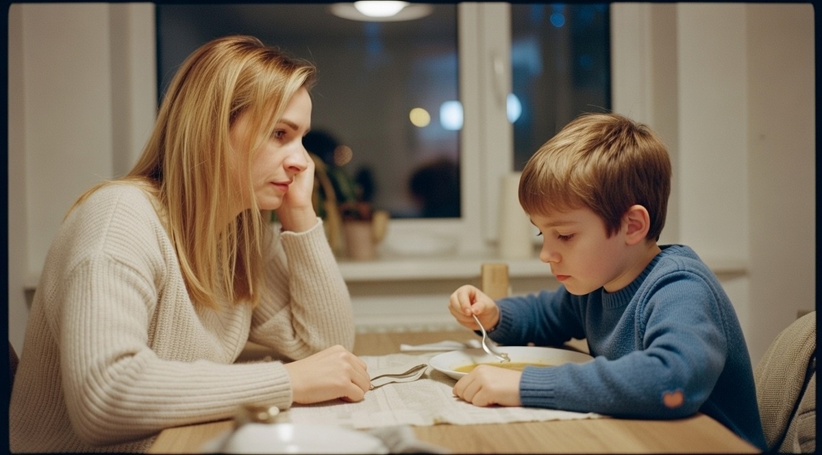 Тихо. Серьёзно. Не как мои дети, которые вскакивают из-за стола и несутся играть, забыв про «спасибо». Кирилл встал, задвинул стул, отнёс тарелку к раковине. Восемь лет, а ведёт себя так, будто ему поручили задание и он боится сделать что-то не так.