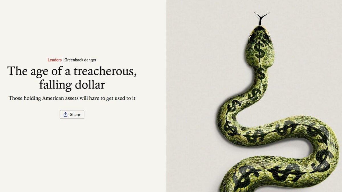 В статье под названием "Эпоха коварного, падающего доллара" отмечается, что с января прошлого года американская валюта просела примерно на 10% по отношению к другим. Владение долларом сегодня более рискованно, чем в последние десятилетия, пишет The Economist. 🔴 Читайте Sputnik Беларусь в MAX