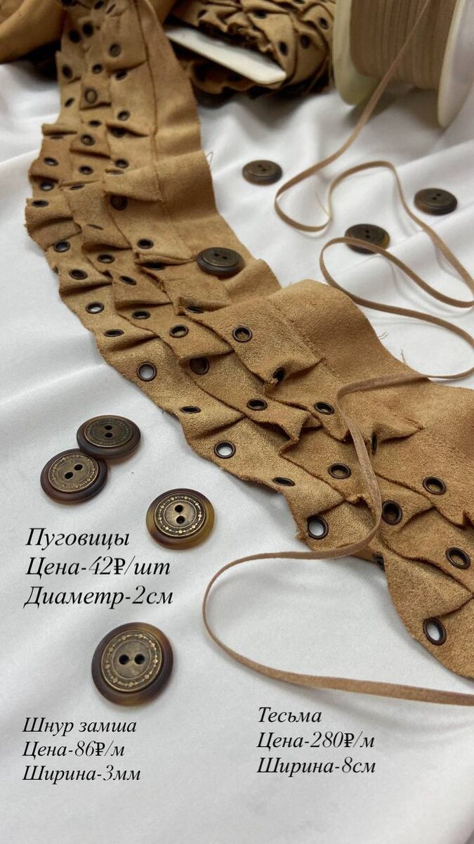 Тесьма с декоративными люверсами под замшу, пуговицы, кожаный и замшевый шнур