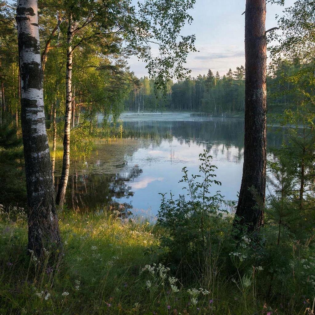 Через несколько часов ходьбы Сергей обнаружил живописное озеро, скрытое среди густых зарослей. Вода была прозрачной и спокойной, отражая небо и деревья. Он решил сделать привал и насладиться видом.