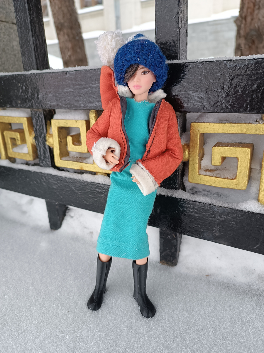 Наверное со стороны было забавно наблюдать, как я стою под огромной елью и фотографирую куклу на фоне забора городского банка😁.