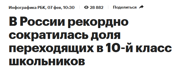 Сегодня у нас в новостях мелькает строчка, что в России рекордно сократилось количество десятиклассников:
