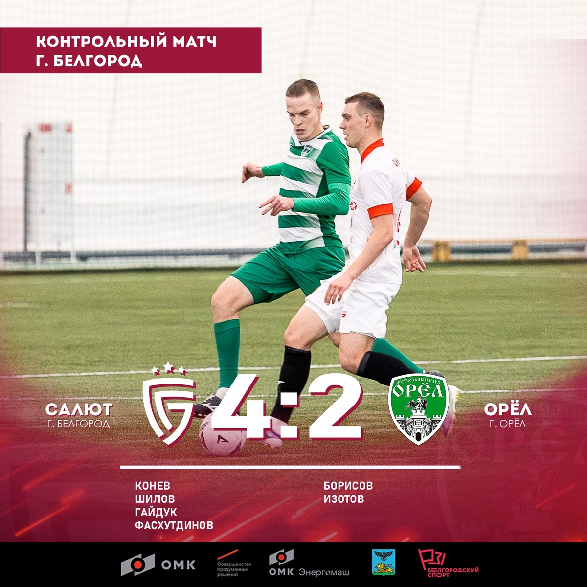 Побеждаем гостей из Орла в заключительном матче сбора в Белгорода. В первом тайме в составе нашей команды голами отметились Конев, Шилов и Гайдук. После перерыва отличился Фасхутдинов.