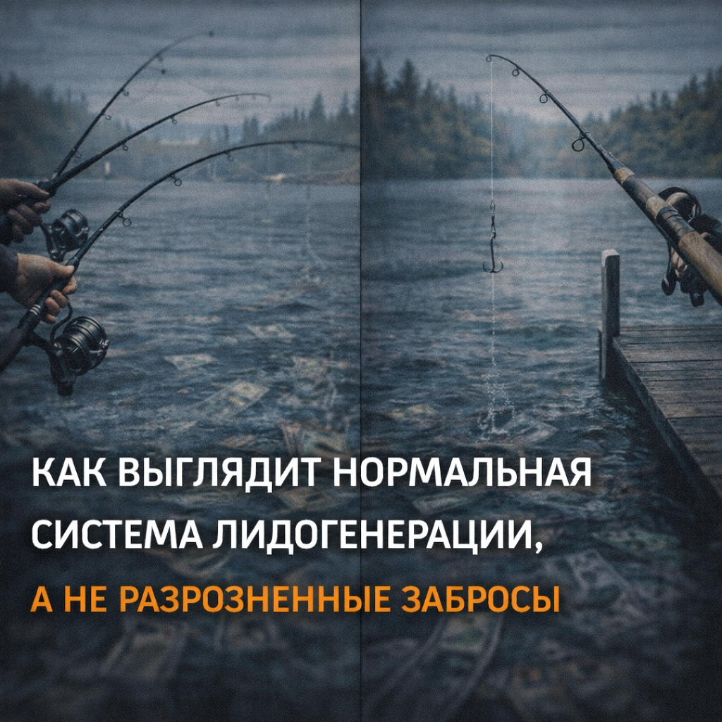 Но рыба либо не клюёт, либо уходит. Потому что никто не управляет процессом целиком. Нормальная система лидогенерации всегда начинается не с рекламы. Она начинается с вопросов: Без этого любая реклама — стрельба по воде. В нормальной системе есть: 1. Чёткий портрет клиента