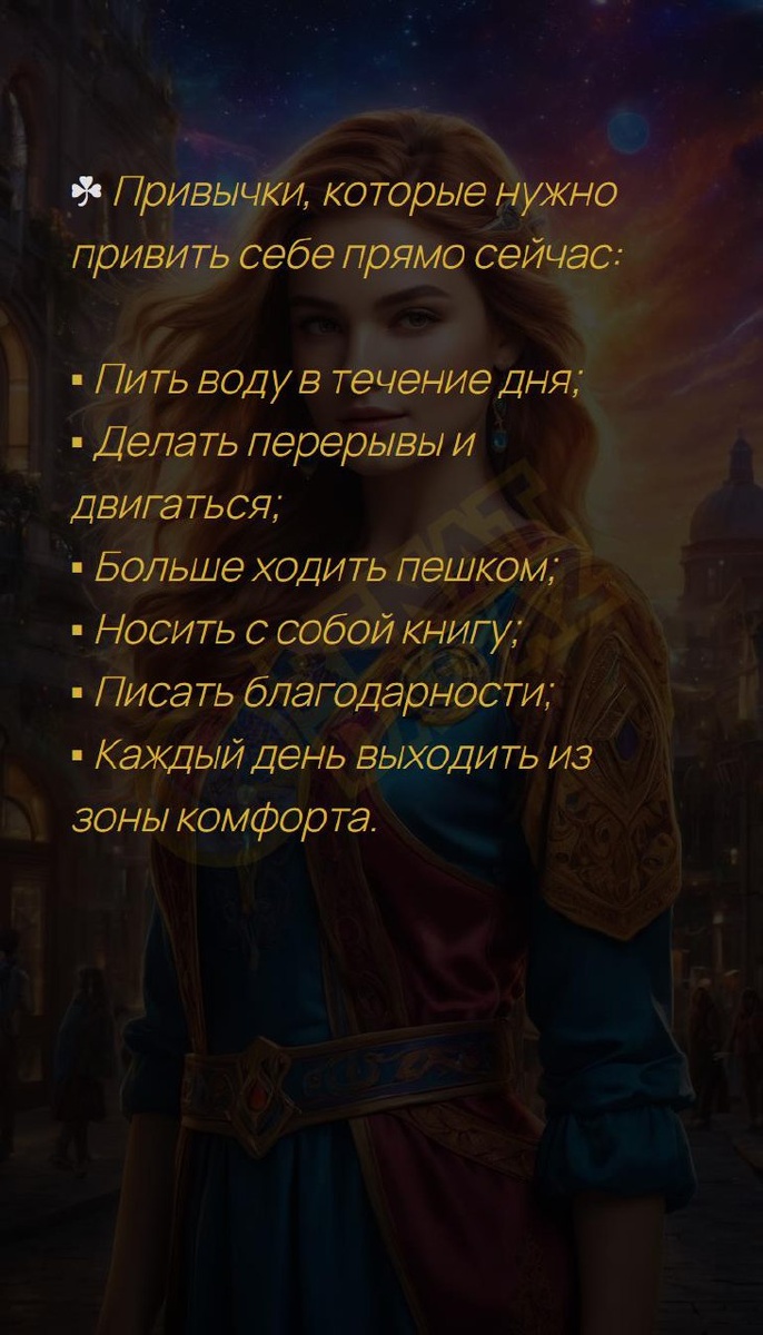 ? Привычки, которые нужно привить себе прямо сейчас: ?? Пить воду в течение дня: ?? Делать перерывы и двигаться: ?? Больше ходить пешком: ?? Носить с собой книгу: ?? Писать благодарности: ?? Каждый день выходить из зоны комфорта. Ваш Ангел и Демон | Архитектура вашей души T | VK | Pin | YouTub | Dzen #мирвдвоем #искренность #хорошиеновости #намерение #популярное #жизненнаясила #осознанноебытие #вселеннаяслышит #единстводуши #7число #7февраля