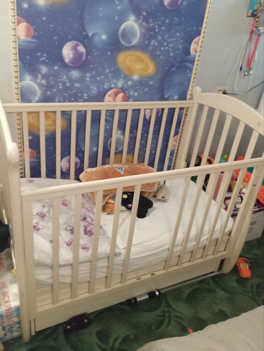 Длина: 126 см, длина: 68 см, ширина: 81 см. Забрать завтра до 15.00 дня. Разбирается. Есть к ней комод. Два уровня поднятия матрасика. Отдаю постельное белье( если нужно), могу отдать подушки для кроватки тоже. Писать @Bring76. ЮВАО, ближайшее метро: Волжская. 🔝 Отдам даром Москва