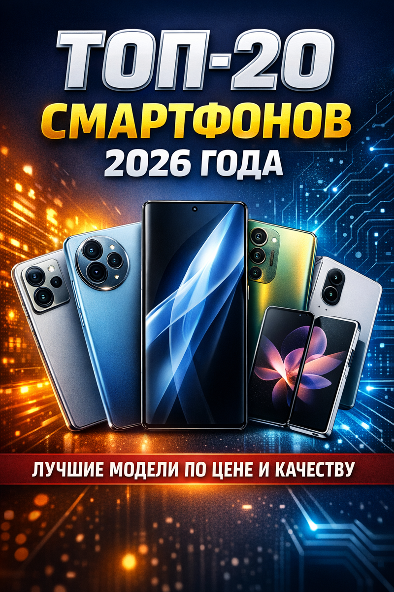 Но разница в цене между моделями доходит до десятков тысяч рублей, и именно здесь становится важно соотношение цена / реальные возможности. В этом рейтинге — 20 смартфонов, которые уже вышли и продаются, и которые в 2026 году выглядят наиболее разумной покупкой в своём сегменте. При отборе учитывались: ❗ В рейтинг не включались слухи, концепты и модели, которых нет в продаже. Перед тем как смотреть ТОП, важно понимать рынок. Один и тот же смартфон в 2026 году может отличаться в цене на 20–30%, и это нормально. Причины: 👉 Поэтому в статье используются ценовые диапазоны, а не одна цифра. Цена: ~37–65 тыс. ₽ Лучший универсальный смартфон 2026 года: 👉 Оптимальный выбор, если нужен мощный смартфон без переплаты за Ultra-флагман. Цена: ~31–44 тыс. ₽ 👉 Максимум возможностей за минимальные деньги. Цена: ~43–54 тыс. ₽ 👉 Для тех, кто хочет Samsung без переплаты за