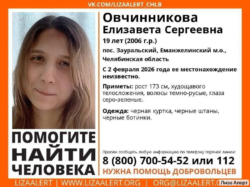 Елизавету Овчинникову в Зауральском ищут уже пятые сутки. В поисках участвуют волонтёры «ЛизаАлерт», полиция, МЧС, спасатели и местные жители. Они используют дроны, внедорожники и снегоходы. 19-летняя девушка ушла прогуляться, как сказала родственникам, на 10 минут, но так и не вернулась. 📲 Читайте нас в MAX 👍 Подписаться на канал | Прислать новость