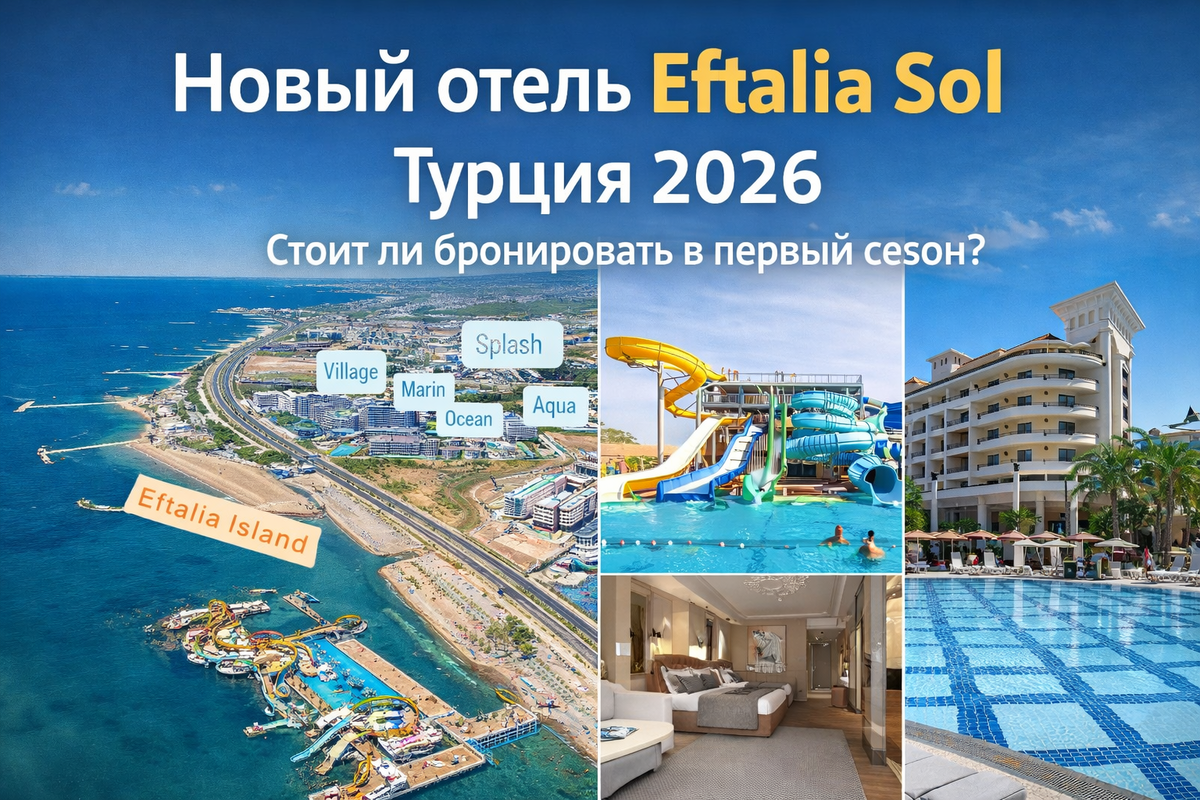 — «Новый — значит сырой и с проблемами» Сейчас одним из самых обсуждаемых новичков стал Eftalia Sol — новый отель известной сети Eftalia в регионе Аланья. Отзывов о нём пока нет. Но это не значит, что мы не можем предположить, чего от него ждать на самом деле. Почему вокруг Eftalia Sol столько внимания? Eftalia — это не неизвестный бренд. Сеть давно работает в Турции и хорошо знакома туристам по остальным семейным отелям в районе Türkler / Аланья. А значит: Eftalia Sol — не отель, в котором все «с нуля», а расширение уже проверенной отельной сети. По информации с европейских сайтов бронирования, Eftalia Sol будет работать в формате Ultra All Inclusive и ориентироваться прежде всего на семьи. Ожидается: Проще говоря, это будет большой, живой, семейныйкомплекс отелей. Пока сам Eftalia Sol не открылся, мы можем ориентироваться на отзывы туристов о других отелях этой се