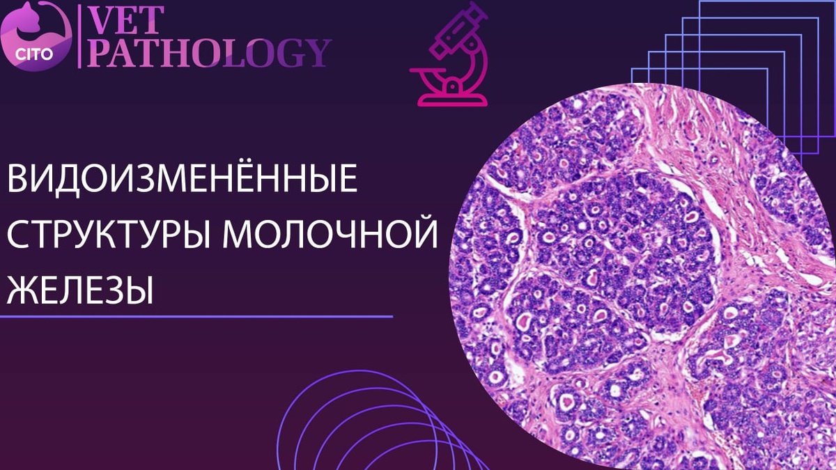 новообразований, не связанных между собой прямой причинно-следственной связью, но требующих комплексной диагностики и лечения. 🐕 В ветеринарный центр патоморфологии VetPathologyCito поступил материал от пациента - нестерилизованной самки собаки, метиса, 8 лет. Причиной обращения стало недавно обнаруженное новообразование в области 4-й пары молочных желёз. Заметного роста за время наблюдения не отмечалось. 🔬 Морфологическое описание: Фрагменты молочной железы с наличием экстралобулярных протоков, в просвете которых слущенный эпителий. Протоки выстланы однорядным уплощенным кубическим эпителием без признаков цитологической атипии. Вокруг расширенных протоков определяется пролиферация дольковых структур с эпителиозом, выстланных кубическим эпителием с секреторной активностью, в просвете эозинофильный аморфный секрет. Часть ацинусов расширены. Междольковая соединительная ткань слабо фиброзирована, с рассеянной лимфоцитарной инфильтрацией. Отмечается опухолевый узел, состоящий из разнок