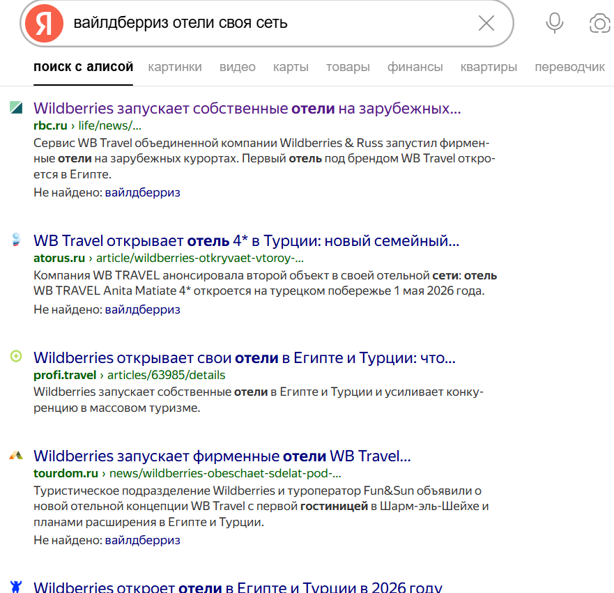 Перехожу к анализу последних новостей. Практически все профильные туристические и центральные СМИ отметились, что Вайлдберриз запускает сеть собственных отелей