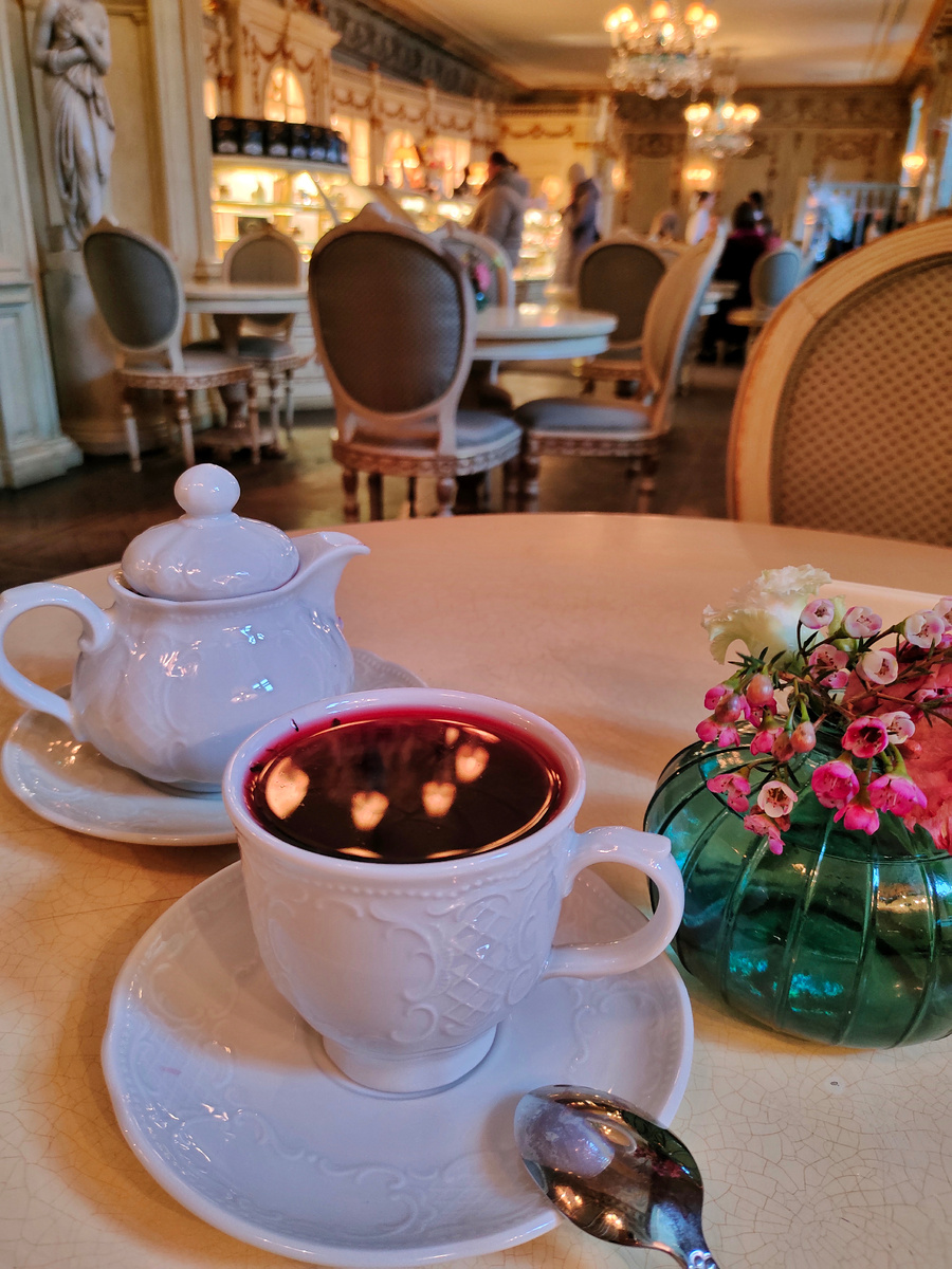 Прогулялась по нарядной Тверской улице и зашла в кафе-кондитерскую Пушкинъ. Хотелось уюта и красивых интерьеров. Изначально планировала посетить уже полюбившееся кафе Шалость в новой локации (они переехали), но поздно спохватилась - не было столиков.