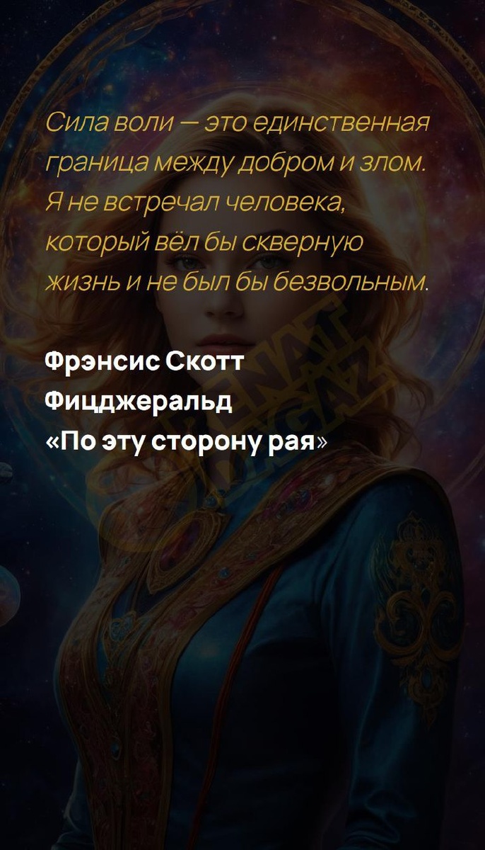 Я не... Сила воли — это единственная граница между добром и злом. Я не встречал человека, который вёл бы скверную жизнь и не был бы безвольным. Фрэнсис Скотт Фицджеральд «По эту сторону рая» Архитектура вашей души | Архитектура вашей души T | VK | Pin | YouTub | Dzen #аффирмации #простыерадости #позитивноемышление #новыевозможности #заботаосебе #момент #здоровьедуши #здоровьедуши #удача #8число #8февраля