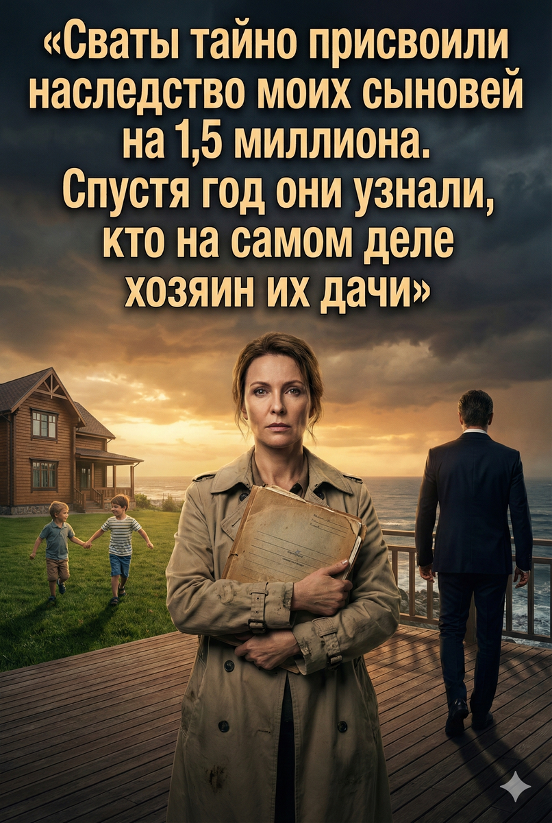 Там было две бумаги. Первая — бабушкино завещание на моих сыновей, Тёмку и Даню. Копия, заверенная, но с отметкой об отмене. А вторая... Вторая бумага заставила меня поставить кружку мимо стола. Это был договор долгосрочной аренды с правом выкупа. Свежий. Подписанный Дмитрием Романовичем, братом моего покойного мужа.