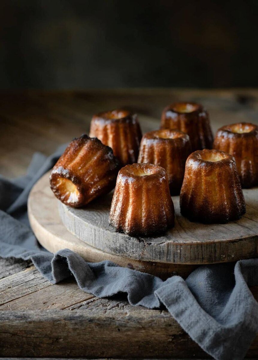 Ингредиенты - 1 л цельного молока - 0,7 стручка ванили - 3 яйца - 500 г сахарного песка - 4 яичных желтка - 100 г несоленого сливочного масла - 250 г муки T55 - 4 столовые ложки арманьяка Приготовление - Доведите молоко и ваниль до кипения. Снимите с огня, добавьте кусочки сливочного масла и дайте настояться 20 минут. - Взбейте целые яйца, яичные желтки и сахар вручную в течение 2 минут, затем взбивайте миксером (скорость 4) в течение 4 минут. - Постепенно влейте эту смесь в просеянную муку и взбивайте до однородности. - Добавьте молоко в несколько приемов (максимум 40°C), затем завершите взбивание миксером. - Добавьте арманьяк. - Дайте тесту постоять в холодильнике не менее 24 часов (в идеале 48 часов). - Разогрейте духовку до 220°C (режим конвекции). - Смажьте формы маслом и вылейте по 75 г теста в каждую. - Выпекайте 10 минут при 225°C, затем примерно 45 минут при 180°C . — Извлеките из формы и дайте остыть на решетке. Наслаждайтесь теплыми или холодными — это простое и вк