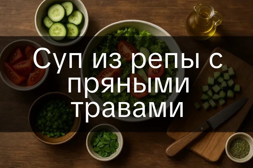 Суп из репы с пряными травами покоряет своим нежным вкусом и ароматом. Этот лёгкий и питательный суп идеально подходит для уютного обеда или ужина в кругу семьи. Насыщенный овощной аромат и мягкая текстура делают его универсальным блюдом для любого времени года. Порций: 2 Время: 30 мин Сложность: легко На блюдо: 300 ккал, 6 г белков, 12 г жиров, 44 г углеводов На 100 г: 50 ккал, 1 г белков, 2 г жиров, 7 г углеводов На порцию: 150 ккал, 3 г белков, 6 г жиров, 22 г углеводов Читать другие наши рецепты на Receptario.ru