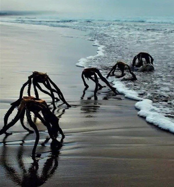 Как вам эти инопланетные монстры на фото, лениво бредущие по берегу океана? И, хочу заметить, весьма земного океана