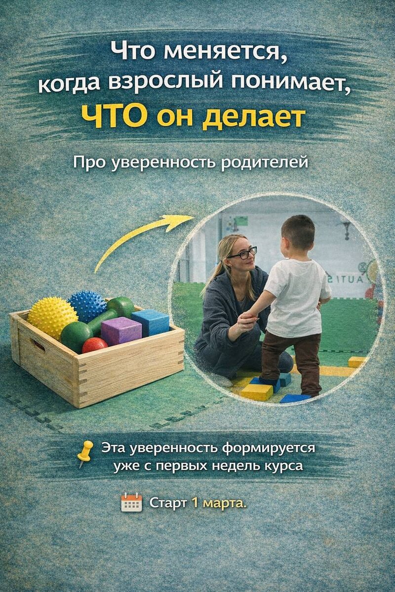 Меняется всё поле вокруг ребёнка. До этого момента родитель часто действует «на ощущениях»: — пробует разные упражнения — переживает, правильно ли — ловит каждую реакцию ребёнка — сомневается после каждого сложного дня И даже если что-то получается, внутри всё равно живёт вопрос: «А это правда работает или нам просто повезло сегодня?» Когда появляется понимание, происходят другие процессы. Родитель: — видит логику занятий, а не набор действий — понимает, зачем именно сейчас это упражнение — знает, что развиваем, а что пока не трогаем — отличает временную сложность от перегруза Исчезает необходимость всё время «подгонять результат». Появляется спокойствие. Это спокойствие очень быстро считывает ребёнок. Инструкции становятся короче. Контакт — устойчивее. Реакции — предсказуемее. Родитель перестаёт: — метаться между методиками — искать «ещё что-нибудь» — чувствовать себя виноватым за каждый откат И начинает: — опираться на понимание — действовать последовательно — доверять процес