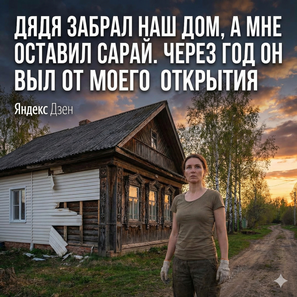 — Ты вообще кто такая, чтобы на порог заходить? — выдал он с таким презрением, что у меня в ушах зазвенело. — Хозяйка выискалась. По документам ты тут никто. Хотя, ладно, я человек не злой. Вон там, на отшибе, сарай стоит. Старый, завалившийся. По закону он в плане участка как хозпостройка идет, и на него я дарственную оформлять не стал — больно много возни с этим хламом. Можешь забирать свой сарай и всё, что в нём. Как раз по твоему статусу имущество.