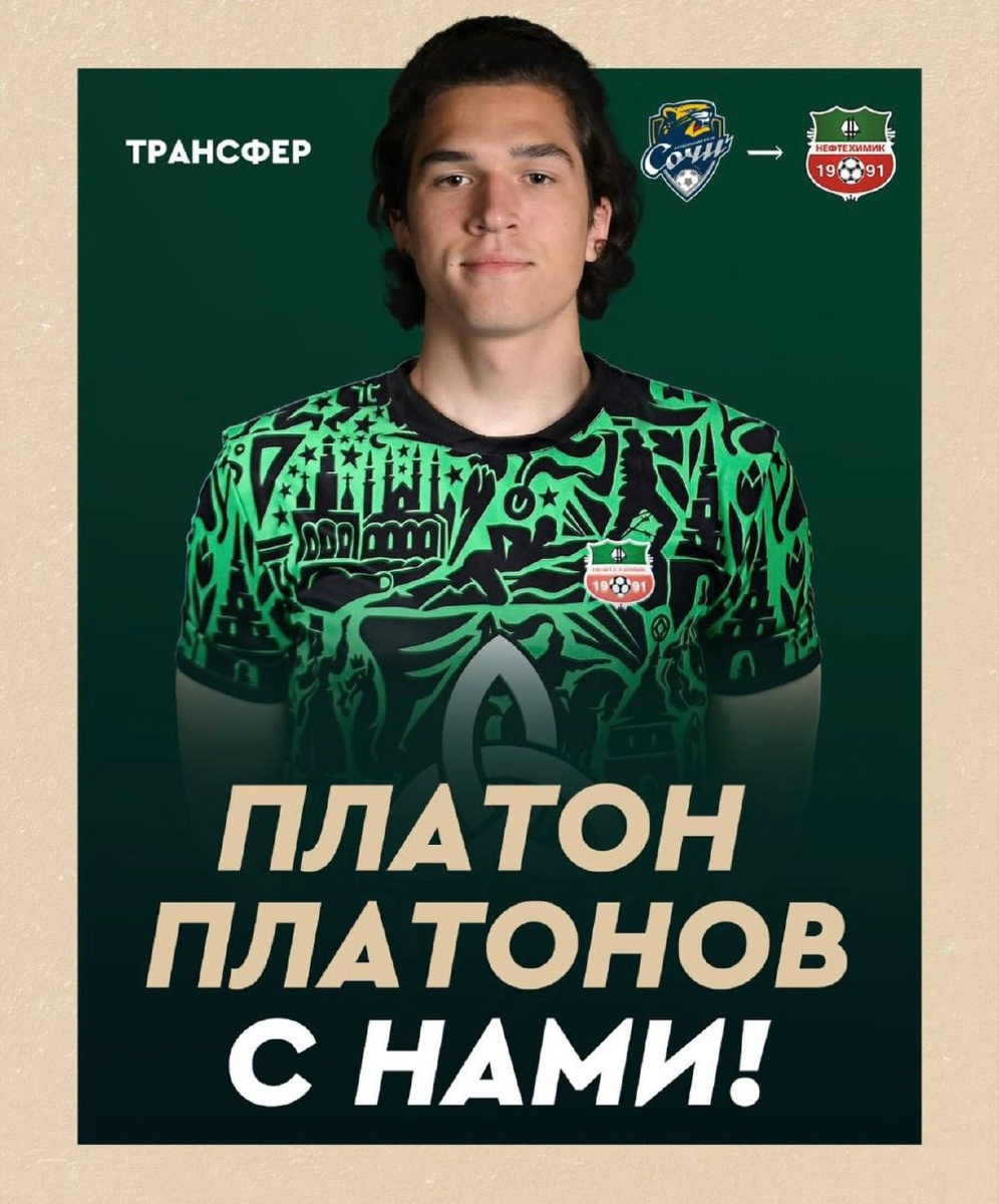 🚨 Защитник Платон Платонов пополнил состав футбольного клуба «Нефтехимик».