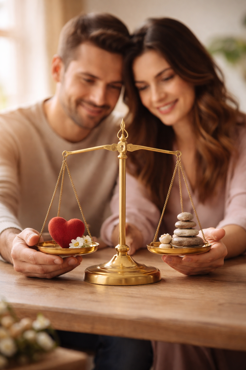 Есть ещё одна важная деталь: баланс — это не арифметика. Это ощущение справедливости. Бывает, что один человек объективно делает больше, но не чувствует дискомфорта, потому что получает в ответ поддержку, уважение, тепло и признание. И наоборот — иногда вклад формально одинаковый, но кто-то чувствует, что его усилия не ценят, и тогда появляется внутреннее ощущение пустоты. Поэтому весы отношений — это не точные цифры, а внутреннее чувство равновесия.