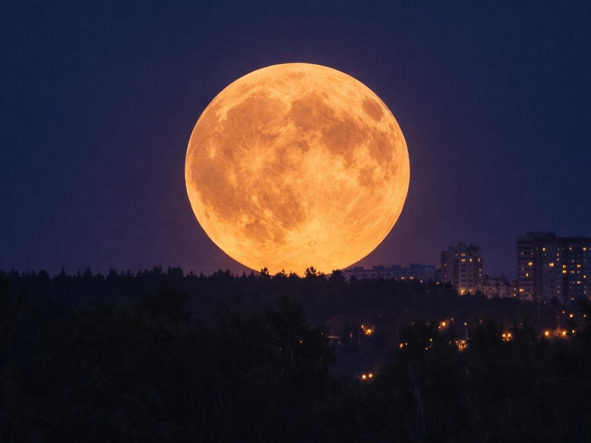 Луна над домами выглядит как гигантский шар: эффект, который ломает логику восприятия