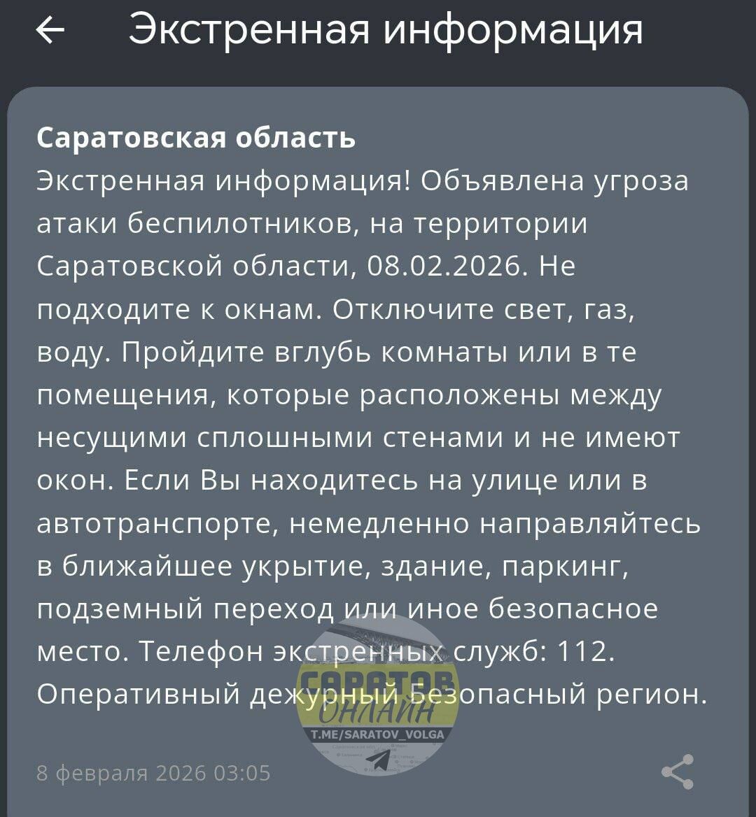 Объявлена угроза атаки беспилотников, на территории Саратовской области — РСЧС