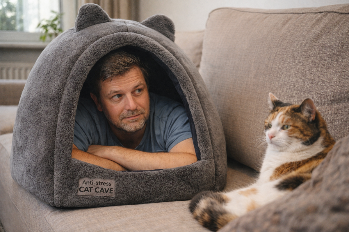 — Понимаете, — объясняла Лена, — мы после переезда всё никак не могли Марусю успокоить. Она первое время по ночам орала, днём пряталась под кроватью. Я начиталась, что у животных стресс, нужно создавать «безопасные зоны», укрытия. Увидела в интернете этот домик. Там такие счастливые котики на фотках сидят…