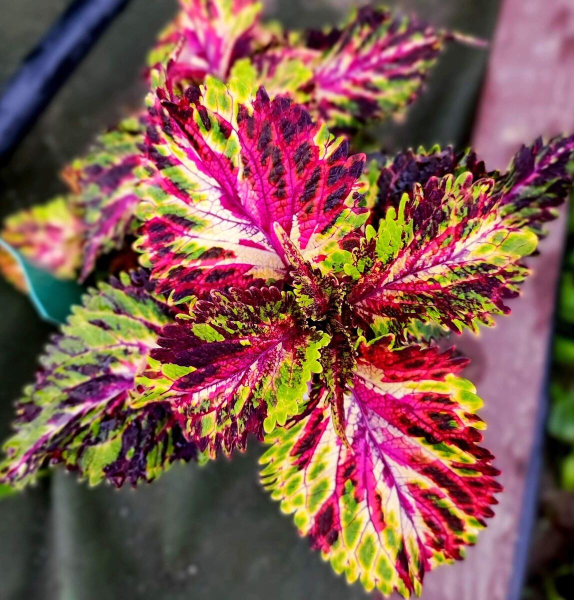 Колеусы (лат. Plectranthus scutellarioides, раньше — Coleus) — это травянистые растения из семейства Яснотковые. Их главная фишка — необыкновенно пёстрые листья, которые могут сочетать самые неожиданные оттенки: от глубокого бордового до лимонно‑жёлтого, от изумрудного до почти чёрного.