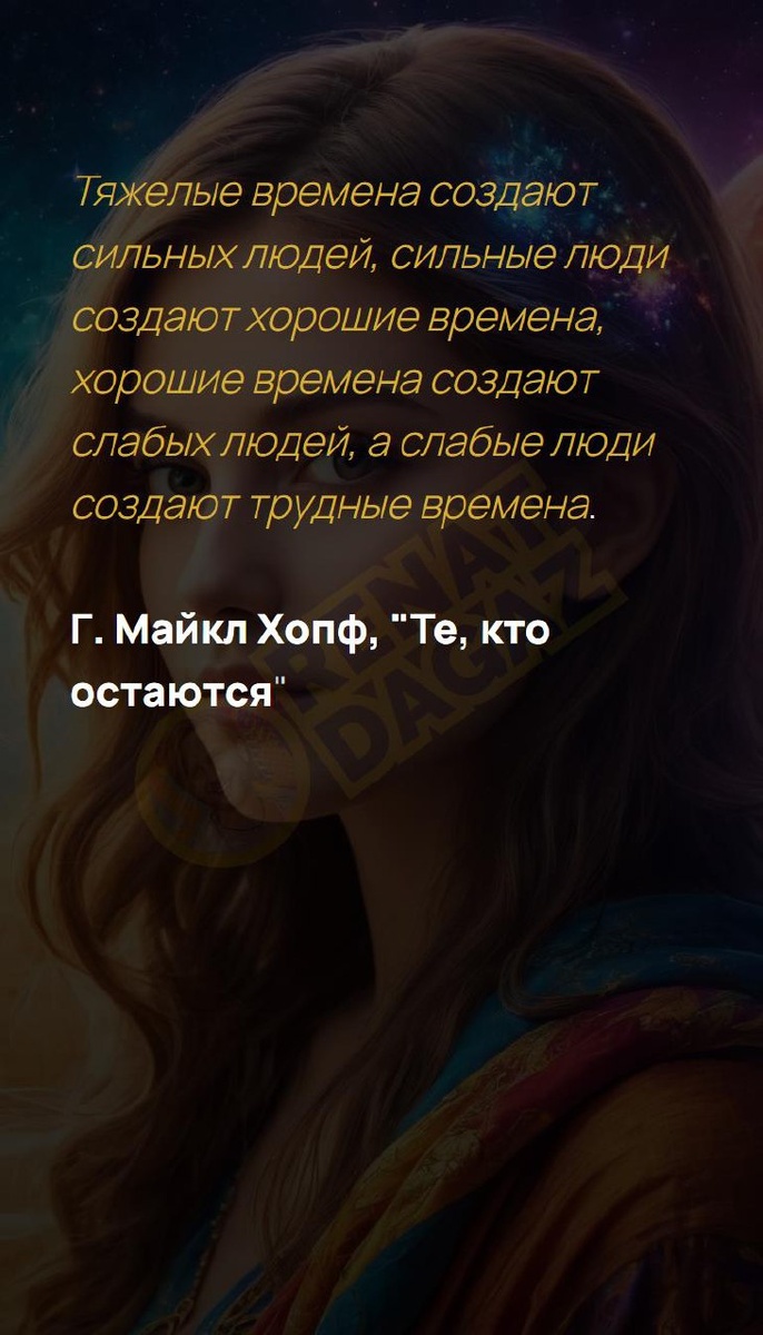 Тяжелые времена создают сильных людей, сильные люди создают хорошие времена, хорошие времена создают слабых людей, а слабые люди создают трудные времена. Г. Майкл Хопф, "Те, кто остаются" Архитектура вашей души | Матрица судьбы T | VK | Pin | YouTub | Dzen #свершение #уверенность #мысль #благородство #возможности #саморазвитие #надежда #саморазвитие #энергиядня #8число #8февраля